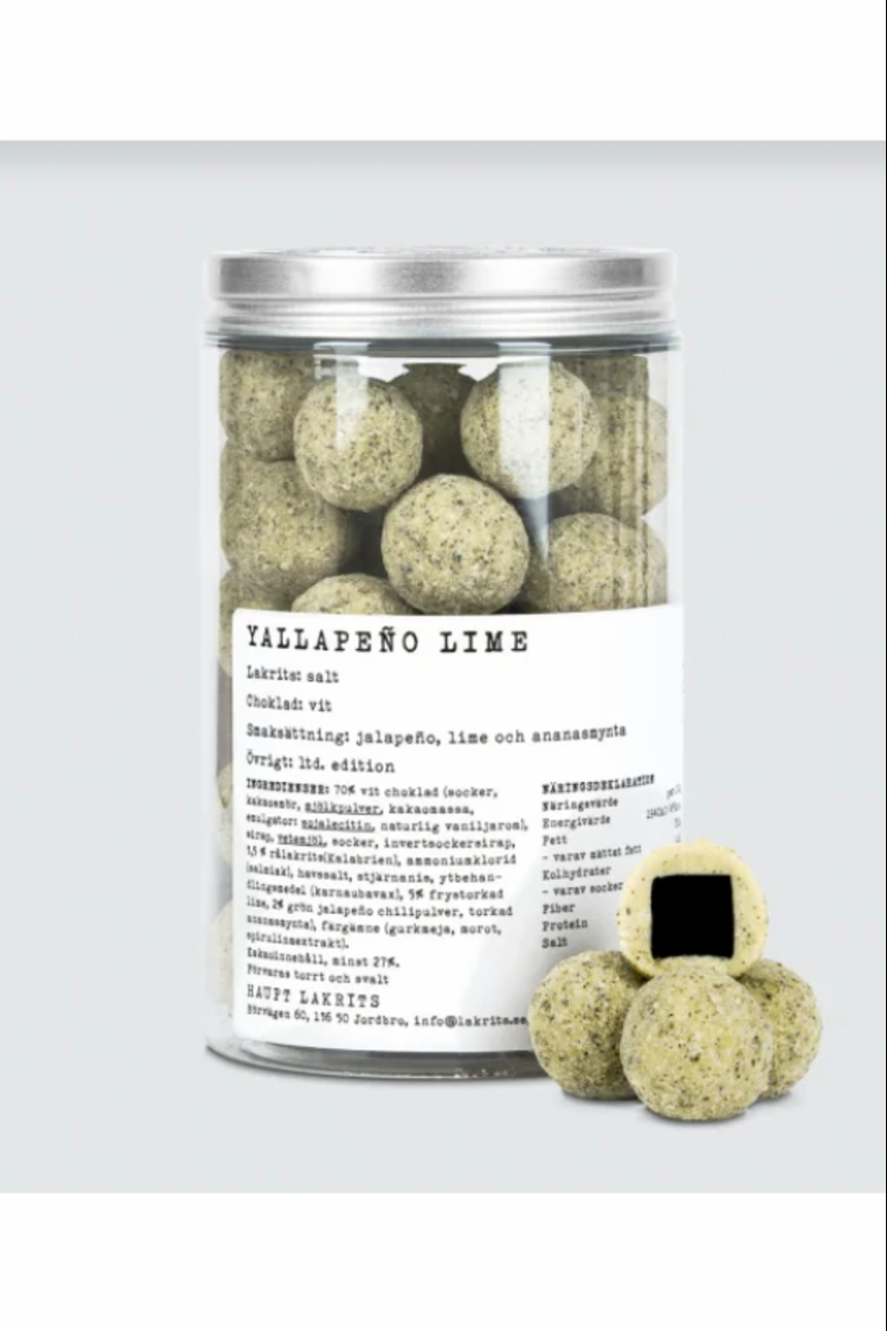 Salt lakris med hvit sjokolade, jalapeno, lime og ananasmynte