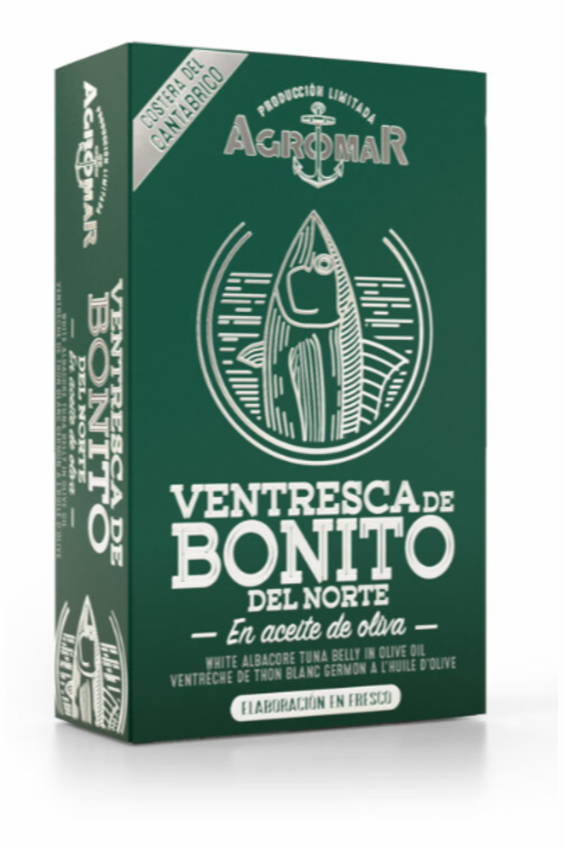 Conservas Agromar Agromar white tuna belly in olive oil (115 gr.) Art.nr. 31176 Ventresca, tunfiskbuk fra tunfiskarten Bonito del Norte. Dette er de mest ettertraktede stykningsdelene av den myteom...