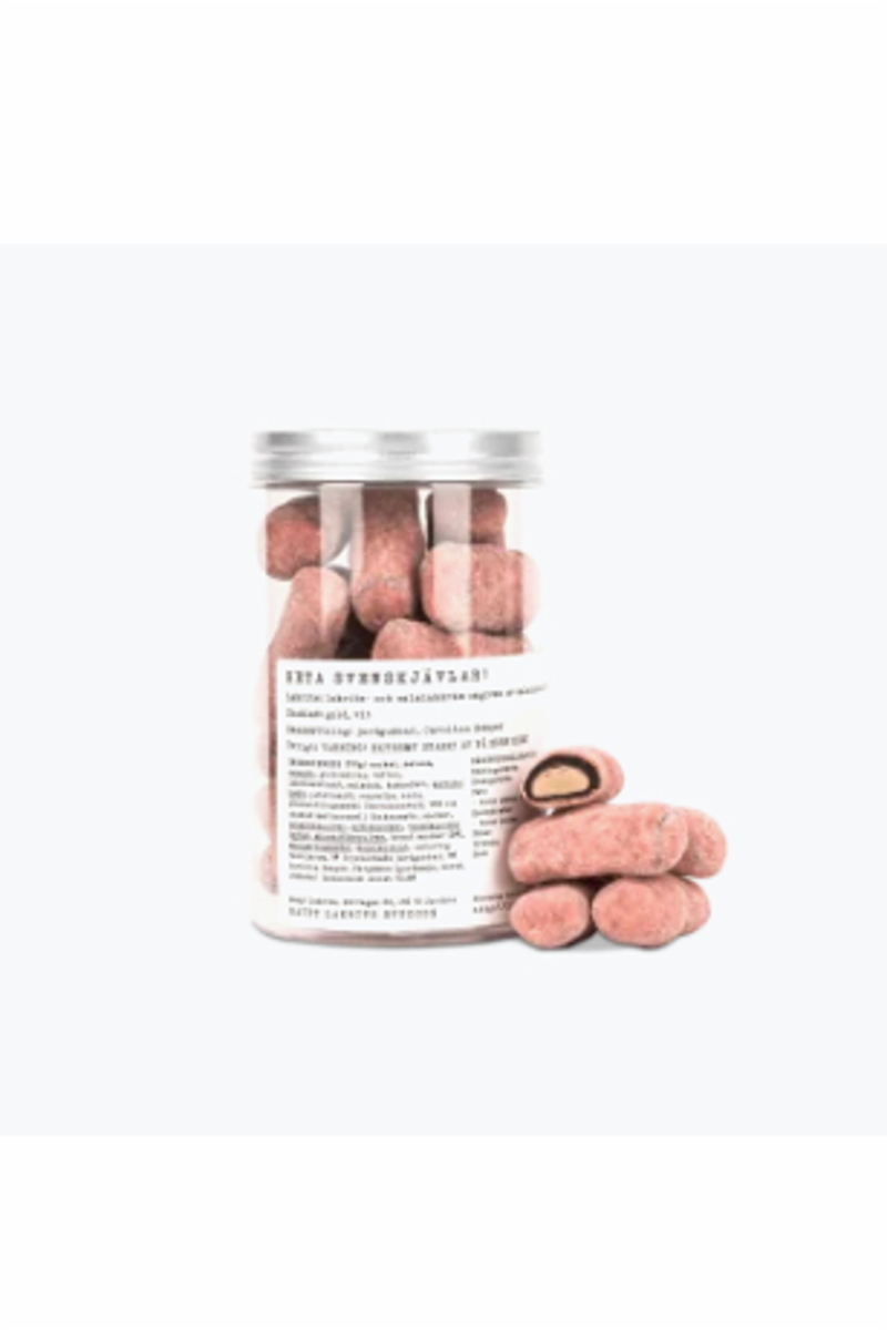 Lakris og salmiakkrem omgitt av lakris og mye salmiakk. Igjen dekket av sjokolade smaksatt med jordbær og carolina reaper (verdens sterkeste chili)