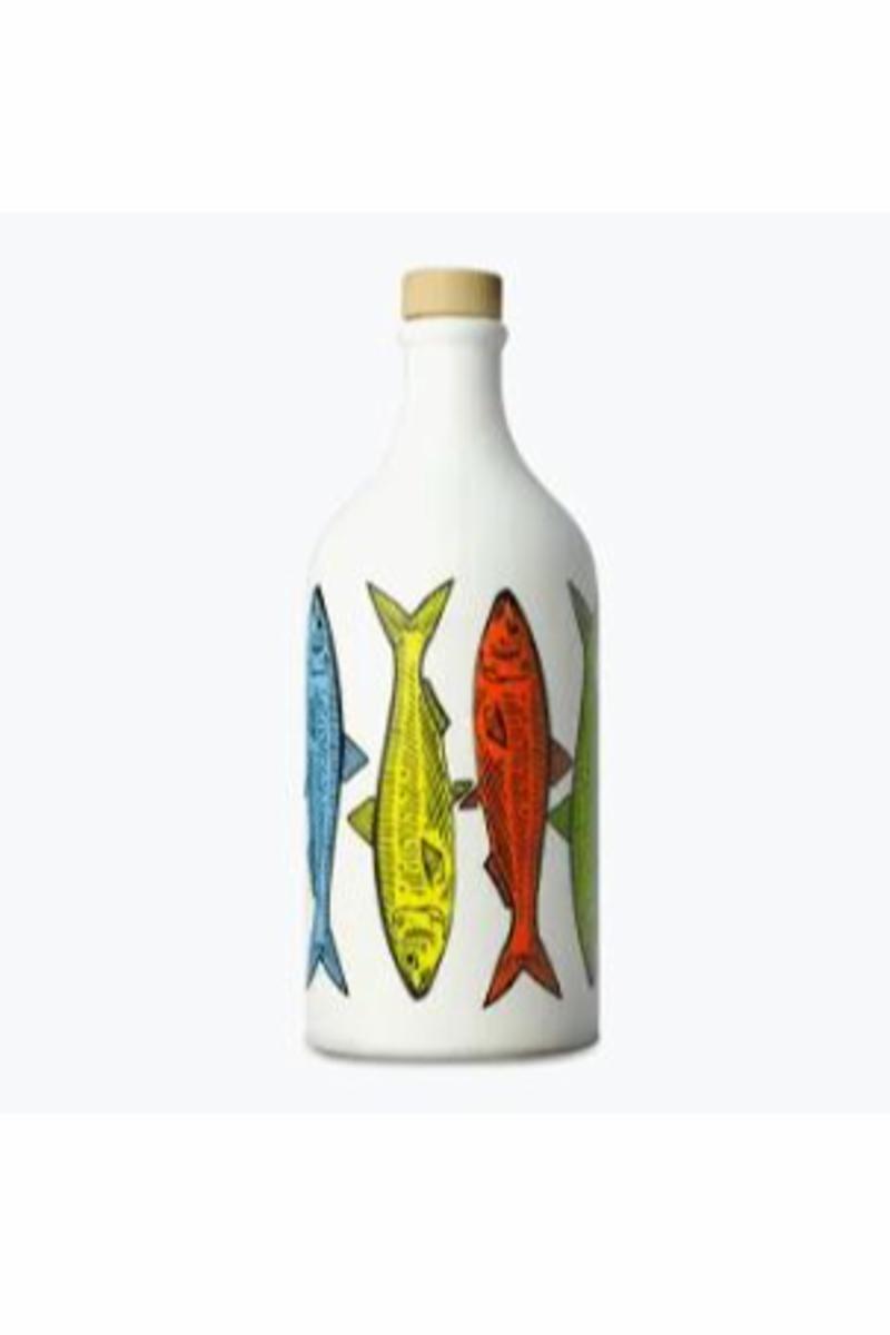 Oljen er laget på Peranzana oliven. Gyllengul farge med innslag av svake grønntoner. Smaken gir intense og klare toner av tomat, ruccula, reddik og artiskokk. Keramikk flaske dekorert med sardiner.